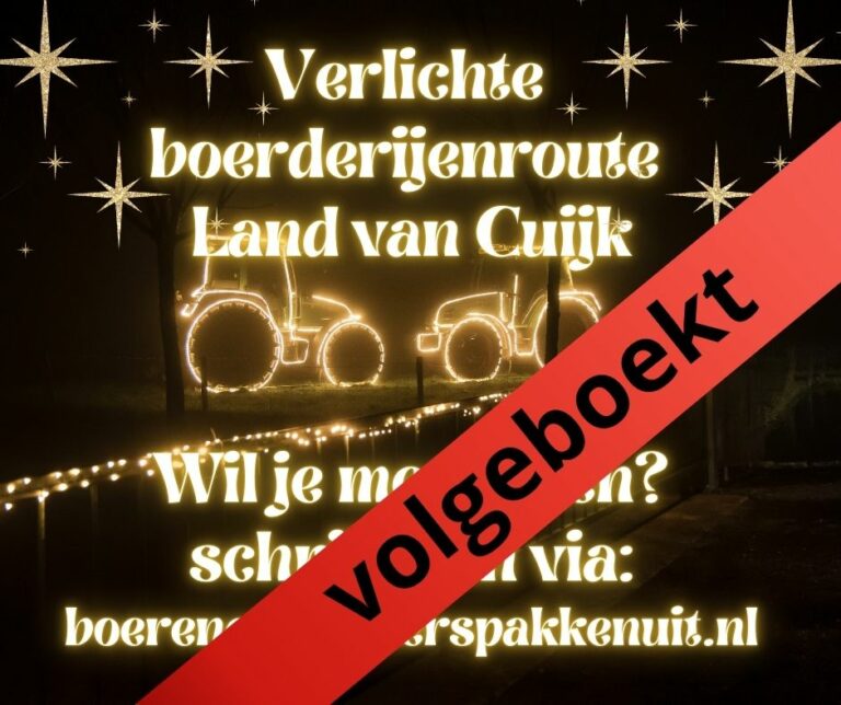 De Verlichte Boerderijenroute Land van Cuijk op 28 december in het Land van Cuijk is volledig uitverkocht. Inschrijven is helaas…