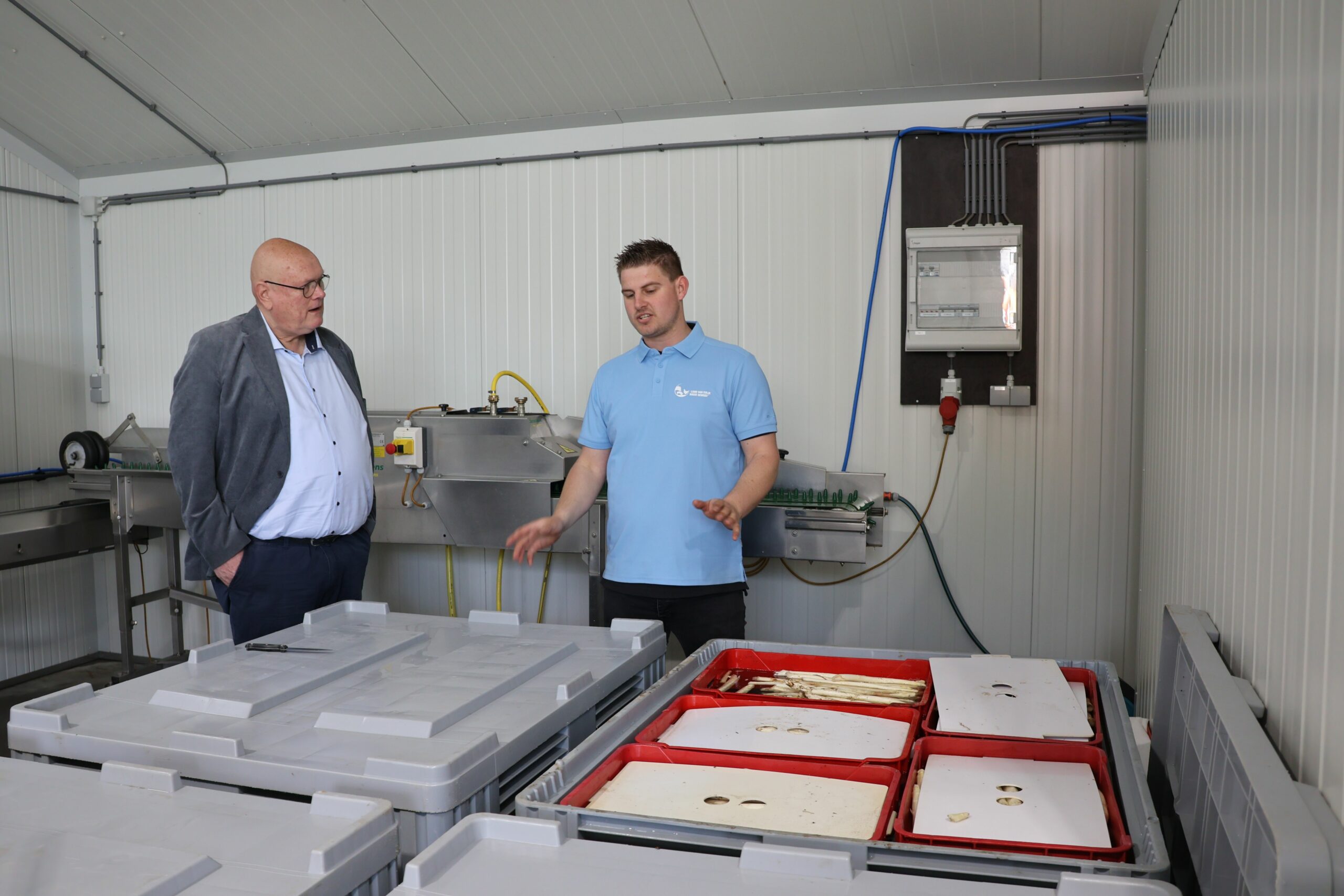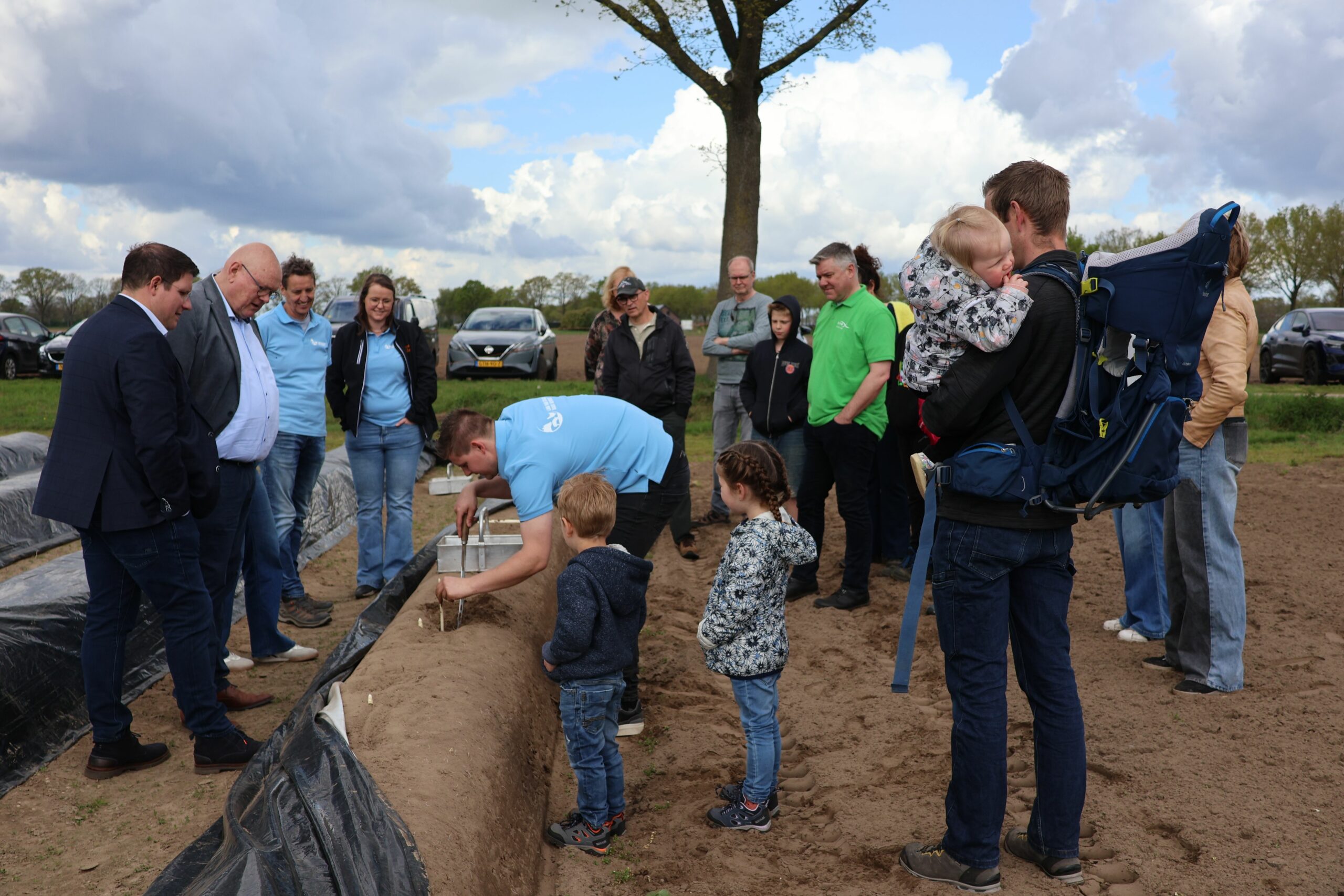 Na de officiële onthulling volgde een rondleiding over het bedrijf. Bezoekers kregen daarbij een inkijkje in de aspergeteelt. Van het planten tot het moment van oogsten gaat meerdere jaren overheen, waarna een plant tot wel acht jaar productief kan blijven. Ook het handmatig steken van de asperges maakte indruk.